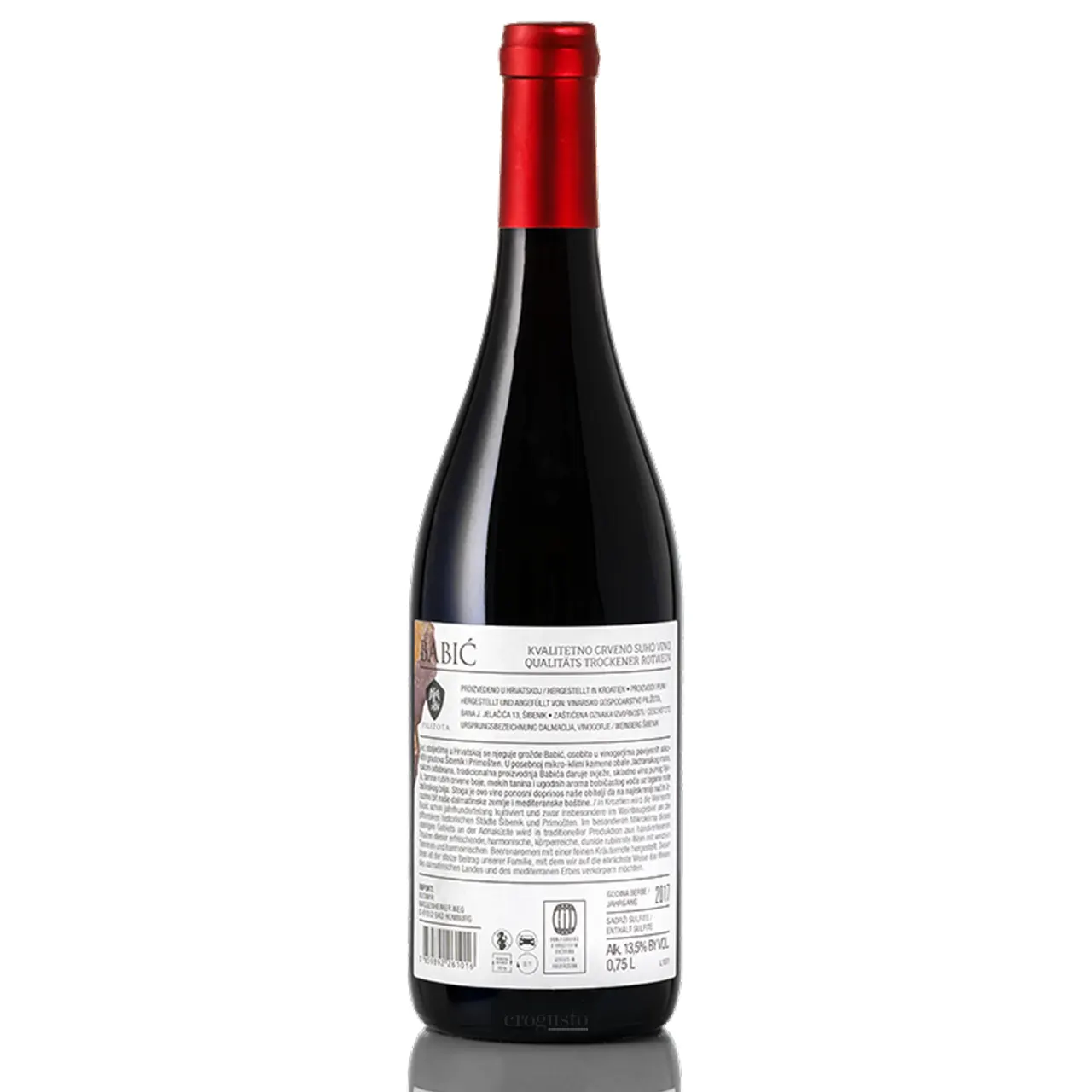 Babić Piližota wird aus ausgesuchten Trauben der einheimischen Rebsorte Babić des Weinbaugebiets Šibenik erzeugt. Den Wein zeichnet eine dunkle rubinrote Farbe aus. Er hat einen frischen und harmonischen Geschmack mit weichen Tanninen und einem feinen Beerenaroma, welches an Kirsche, Himbeere und Johannisbeere erinnert.